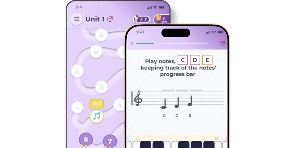 These open doors help dispel the main barriers: fear of getting it wrong, slow progress, loss of inspiration. What do you end up with at the end of it all? Learning music becomes a journey that invites you in — each sound a notch closer to mastery (and improved learning retention).